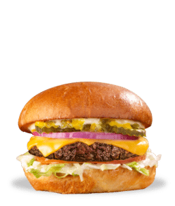 The Impossible Fatburger starts with a juicy, tasty Impossible burger patty, topped with cheese, red onion, pickles, relish, mustard and mayonnaise. Served on a toasted Brioche bun with crisp lettuce and ripe tomato.
